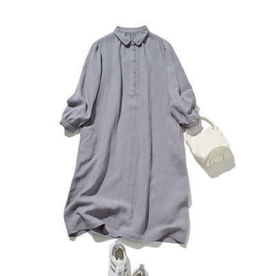 大人の上品な可愛らしさを演出 丸襟ワンピース ロングワンピース リネンワンピース 250918