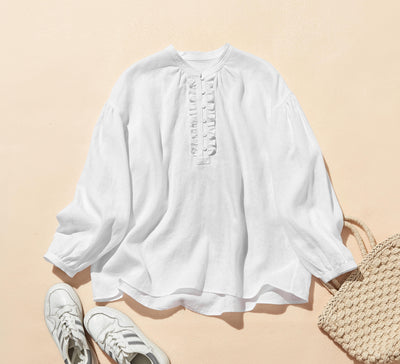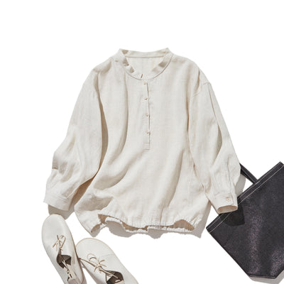 シーンを選ばず、さまざまなコーディネートの主役になるリネンブラウス 長袖ブラウス 250921