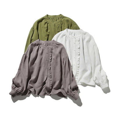 シンプルコーデに立体感と華やぎを添える一枚 フランチリネン 100% 長袖ブラウス 250815