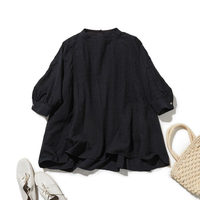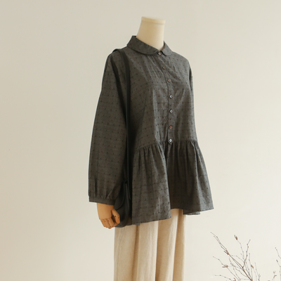 立体シルエットが美しい、ドット織りシャツブラウス  長袖ブラウス 250919-1