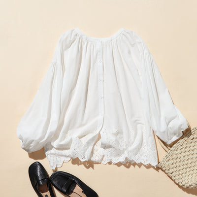 ふんわり優美な刺繍が魅力のコットンプルオーバー 7分袖 コットン100%  250806-2