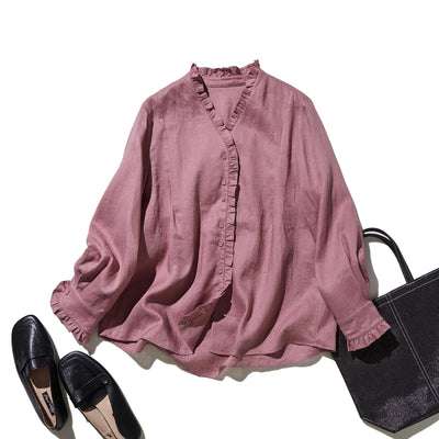 日常に彩りを添えるリネン シャツブラウス 長袖シャツ リネン100%  250813