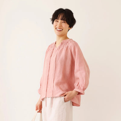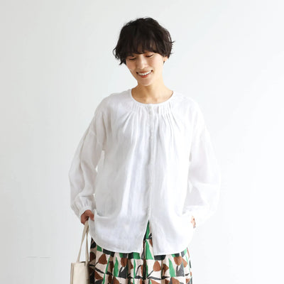 シンプルだけど、どこか特別 プリーツ加工シャツブラウス リネン100%シャツ 250915-1