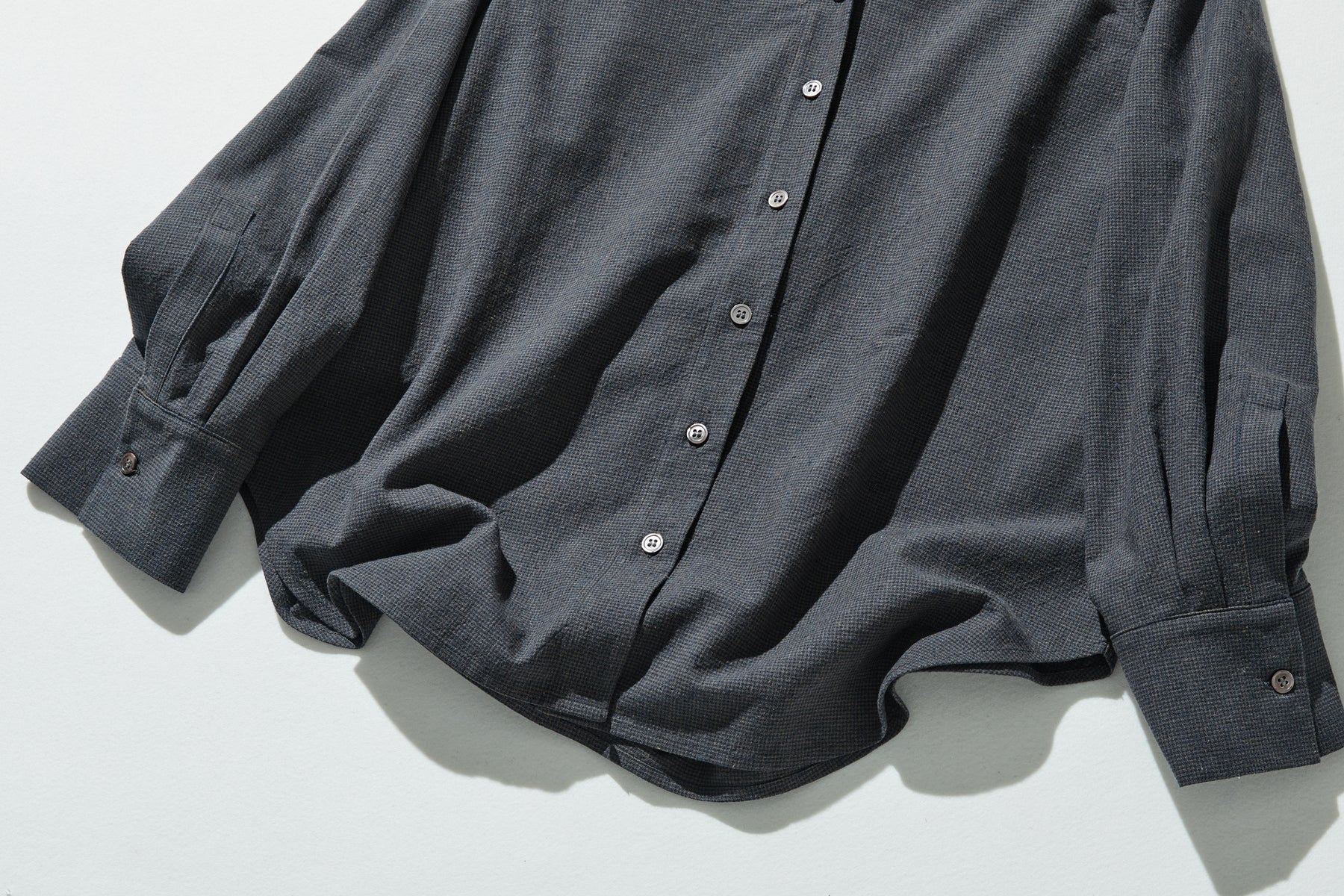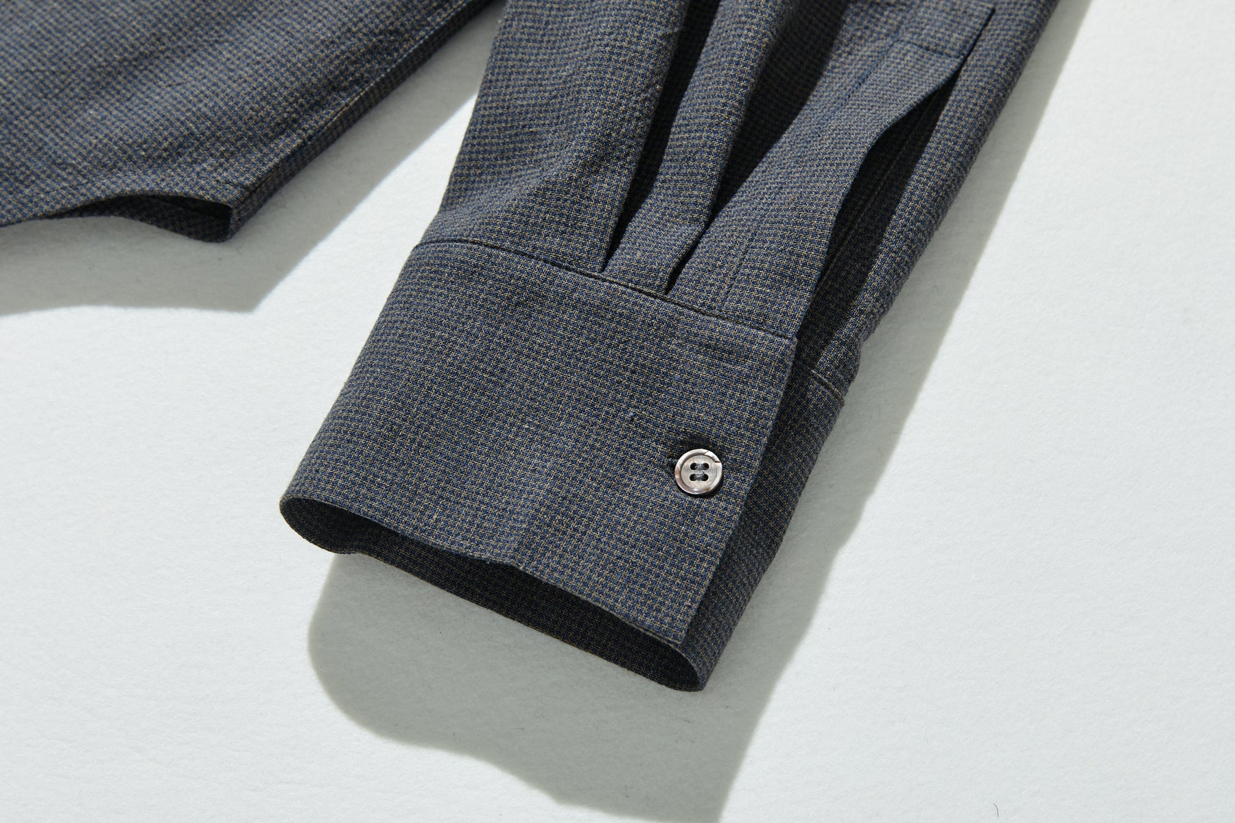 こちらは、今シーズン登場した小千鳥格子のロングスリーブシャツ。