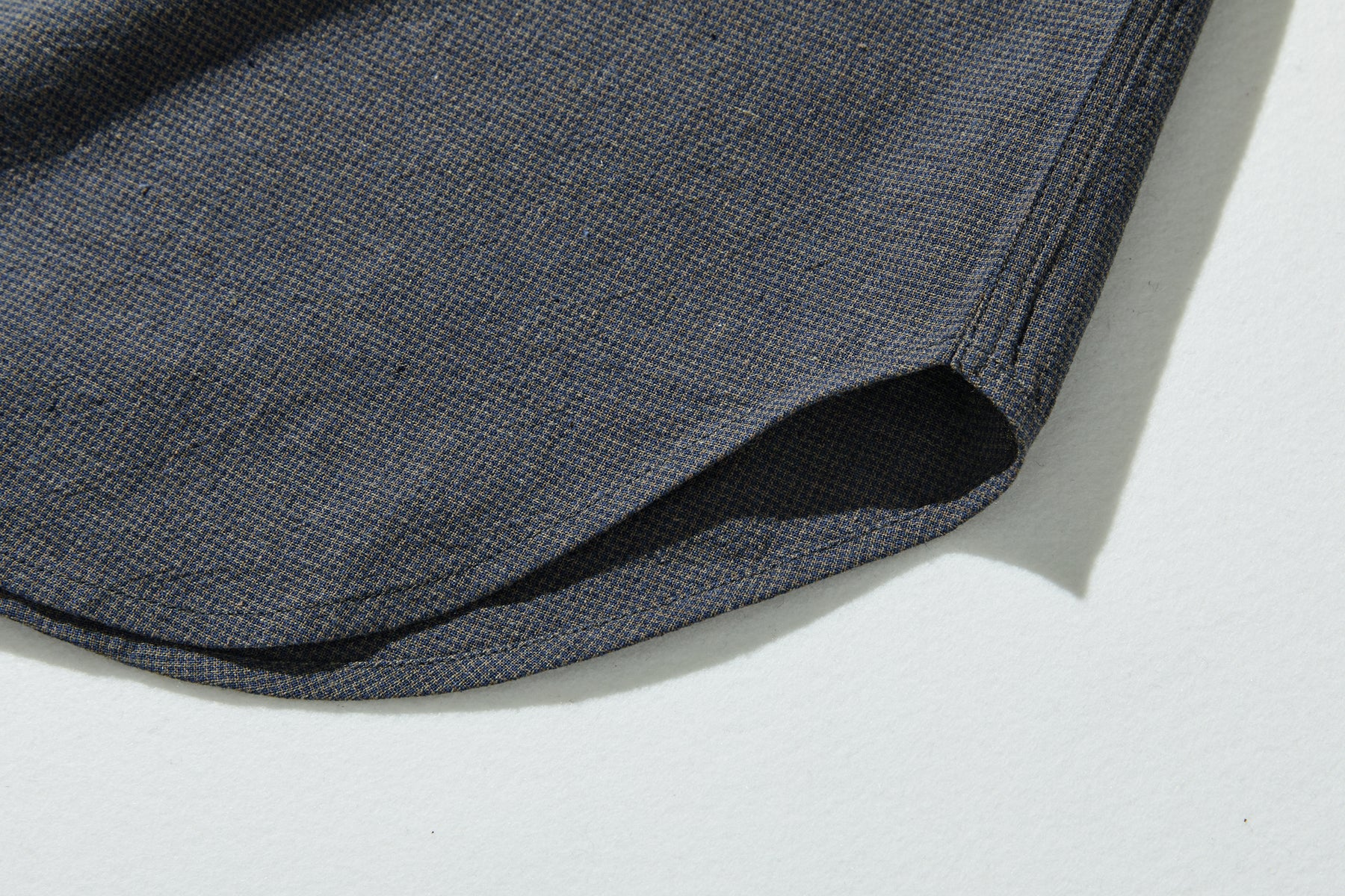 スキッパーネックと低めのスタンドカラーが清潔感ある印象に。前後差をつけたラウンドヘムが、横や後ろから見てもきれいなシルエットをかなえます。