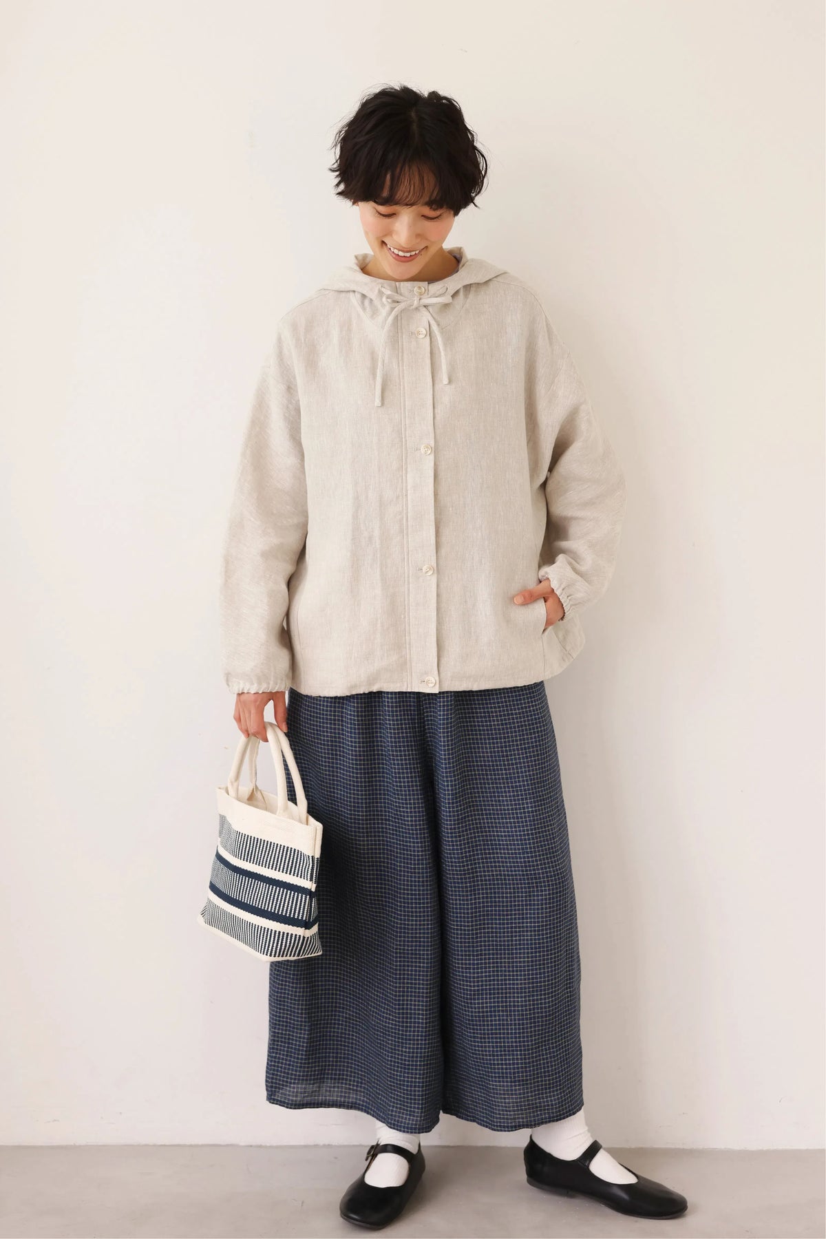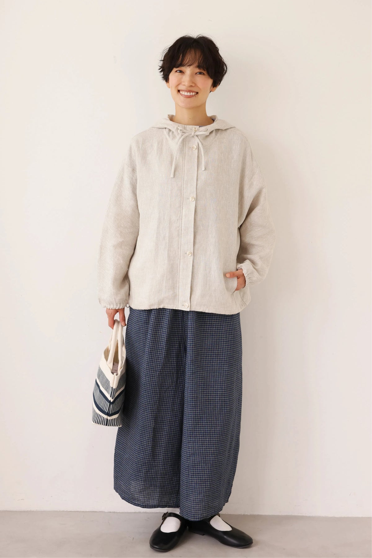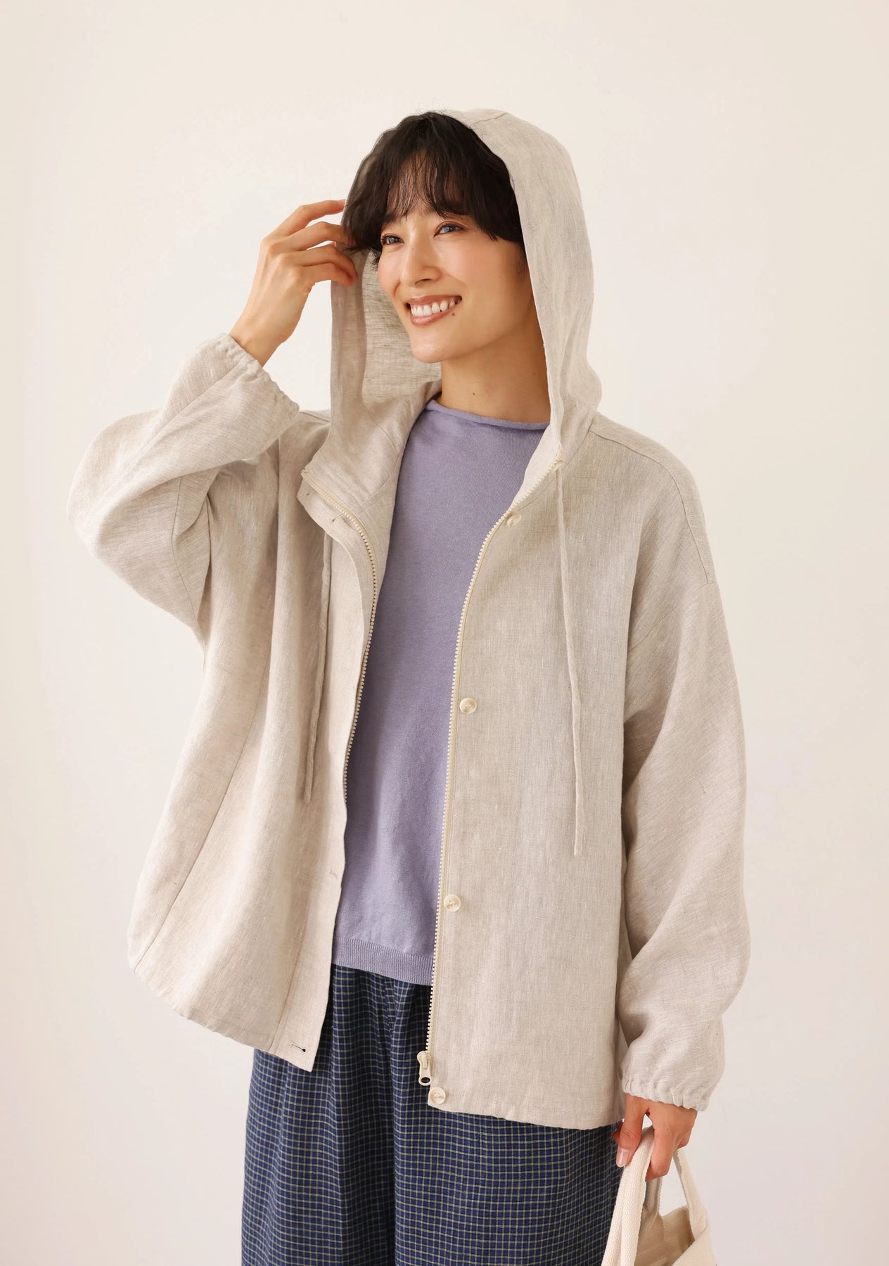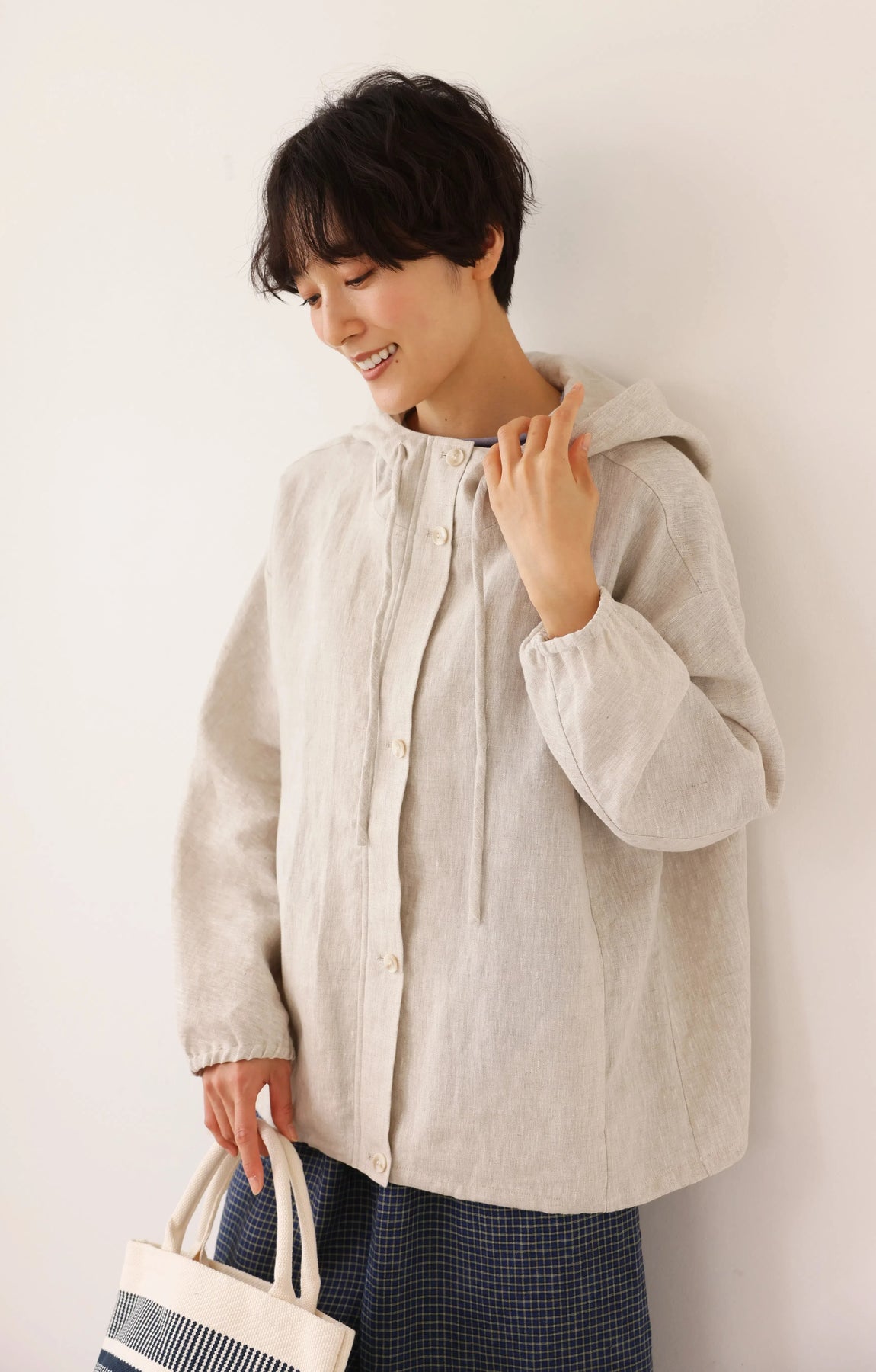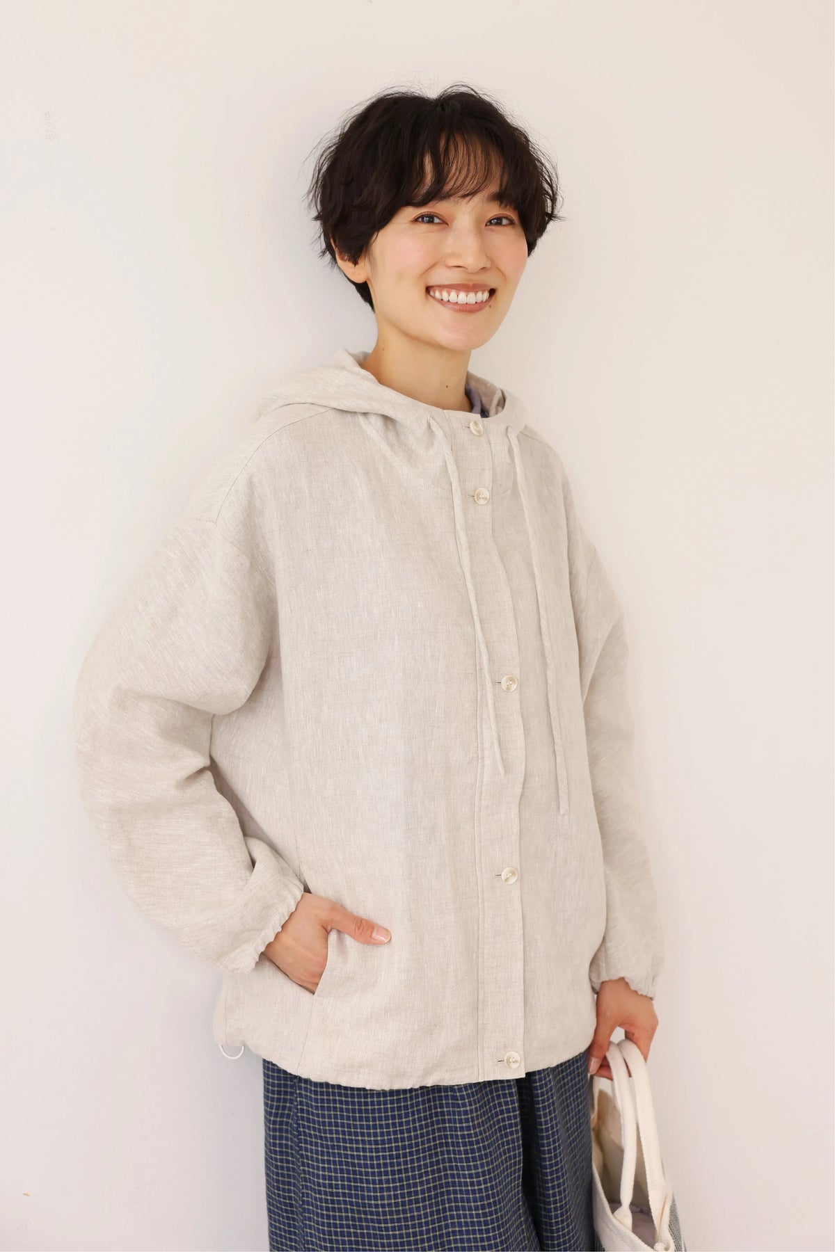 着る人を選ばない、長く愛用できる一枚 リネン100% フード付きブルゾン 秋冬アウター 生成色 250902-1★なめらかな肌触りが心地よい、リネン100%のブルゾンが登場です。ラフな印象になりがちなパーカーも、麻素材ならではのナチュラルな風合いで、上品に着こなせます。★くったりと肌あたりがやさしい甘織り仕立てのリネンは、通気性や保温性に優れ、季節をまたいで快適に着回せるのが最大の魅力。ゆったりとしたドロップショルダー設計で、着心地も軽やかです。★広めの身幅でインナーを重ねても窮屈感がなく、ゆったり快適に着られるシルエット。★フードが生み出すほどよい立体感がアクセントになり、どの角度から見てもフォルムの美しさが光ります。★自然体で品のある装いを楽しめる、普段のワードローブに加えるだけで重宝すること間違いなしの一着です。【こだわりのディテール】• フードには同素材の調節コード付き:お好みでシルエットを調整可能• ダブルフロント仕様:内側にジッパー、外側にボタンで秋冬の風もしっかりガード• 裾のしぼりコードでシルエットチェンジ可能:すっきりラインもゆったりシルエットも自由自在【着こなしの提案】◎ 季節を問わず大活躍:• 春〜夏:Tシャツやタンクトップにさっと羽織って。涼しい日や冷房対策に• 秋〜冬:ニットやセーターの上から重ね着して。麻なのに保温性があり、風を通さない設計が頼もしい◎ スタイリング例:• デニムとスニーカーに合わせてカジュアルに• ワンピースやスカートと合わせて大人のゆるめテイストに• 裾をしぼってシルエットを変えれば、気分に合わせて着こなし方も多彩に素材:リネン100%サイズ:M身丈60cmバスト118cm肩幅51cm袖丈47cm袖口21cmアームホール60cm裾116cmL身丈63cmバスト122cm肩幅53cm袖丈48cm袖口22cmアームホール52cm裾120cmモデルさんの身長:163cm 着用サイズ:L透け感:なし裏地:なしポケット:あり伸縮性:なし光沢感:なしシーズン:春、夏、秋、冬