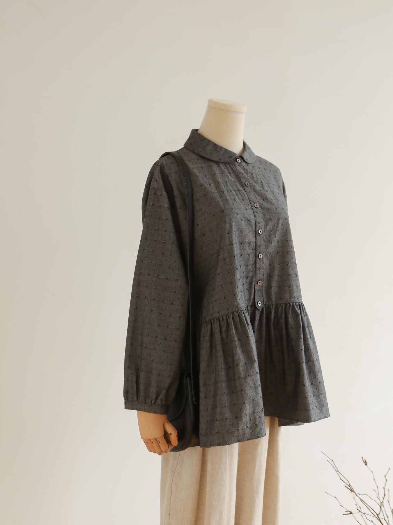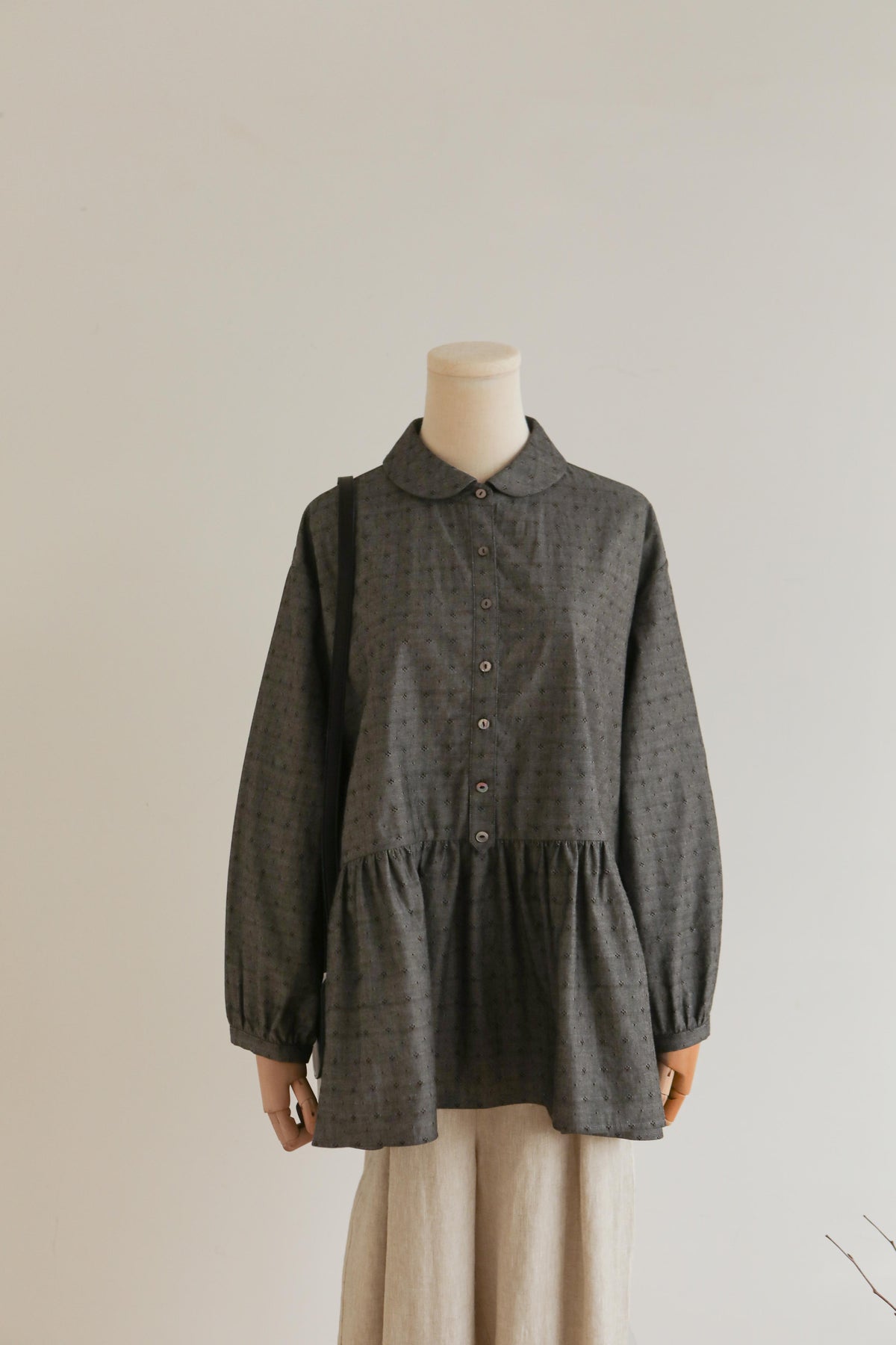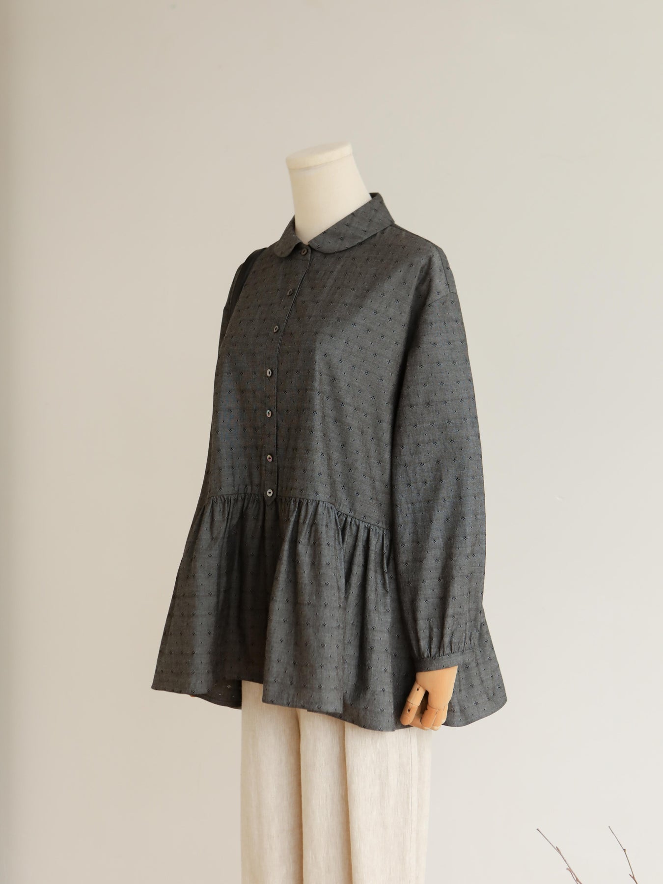 秋冬の装いに深みを添える ジャガードデニムブラウス 丸襟ブラウス かぶりタイプ 240412-1