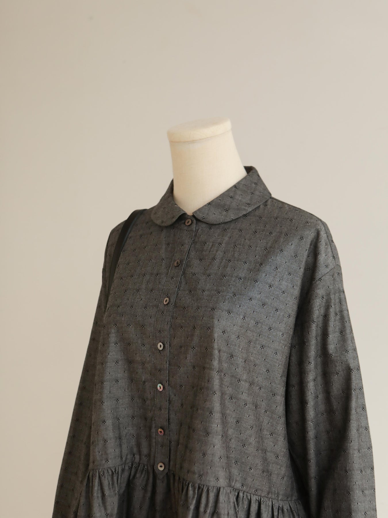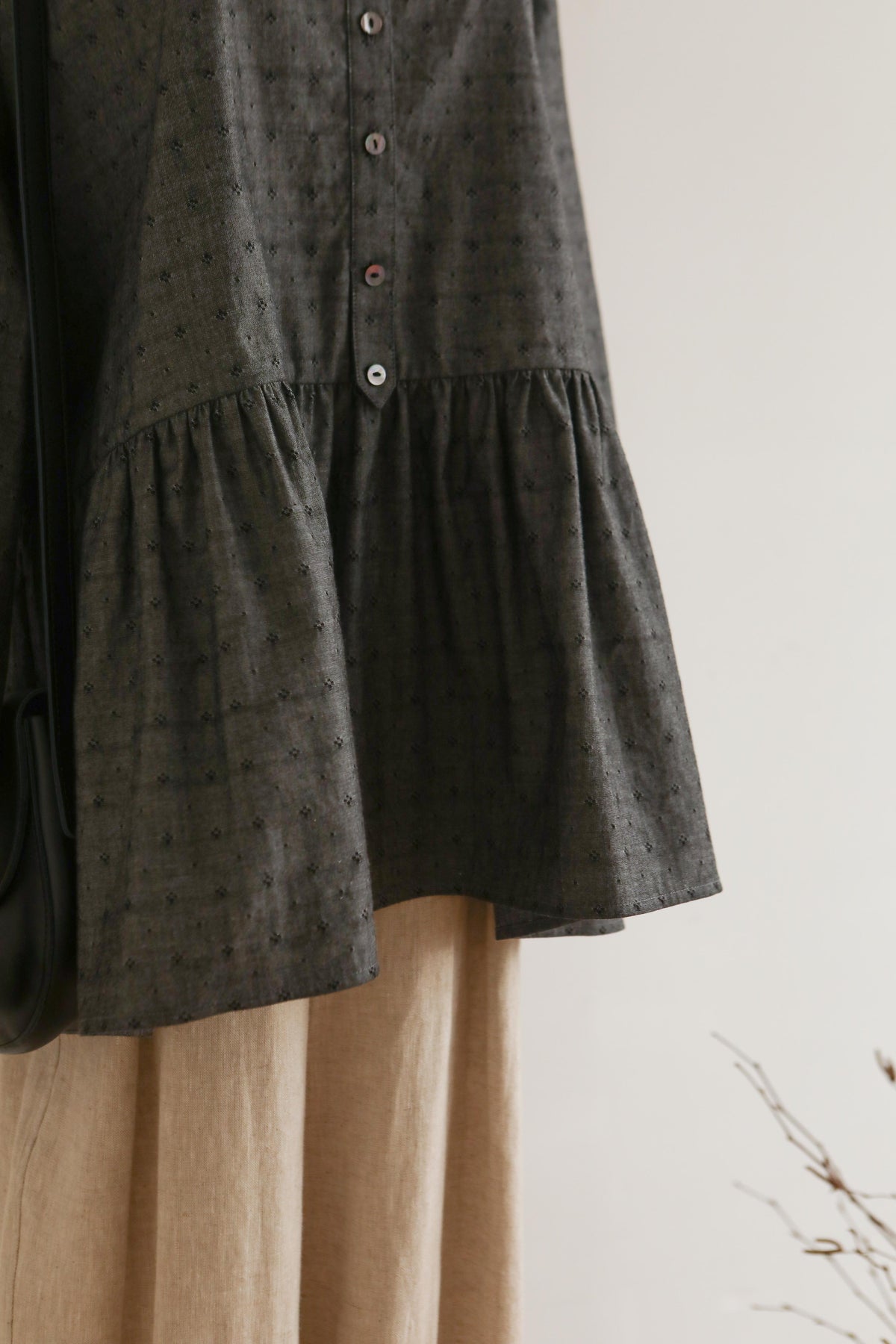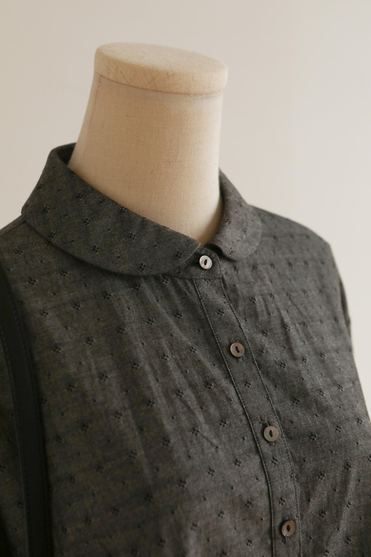 立体シルエットが美しい、ドット織りシャツブラウス  長袖ブラウス 250919-1