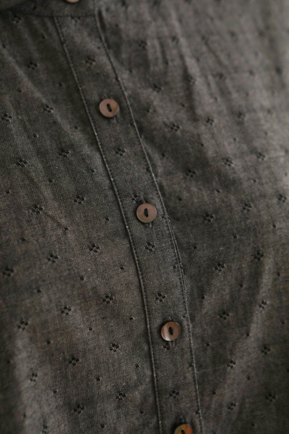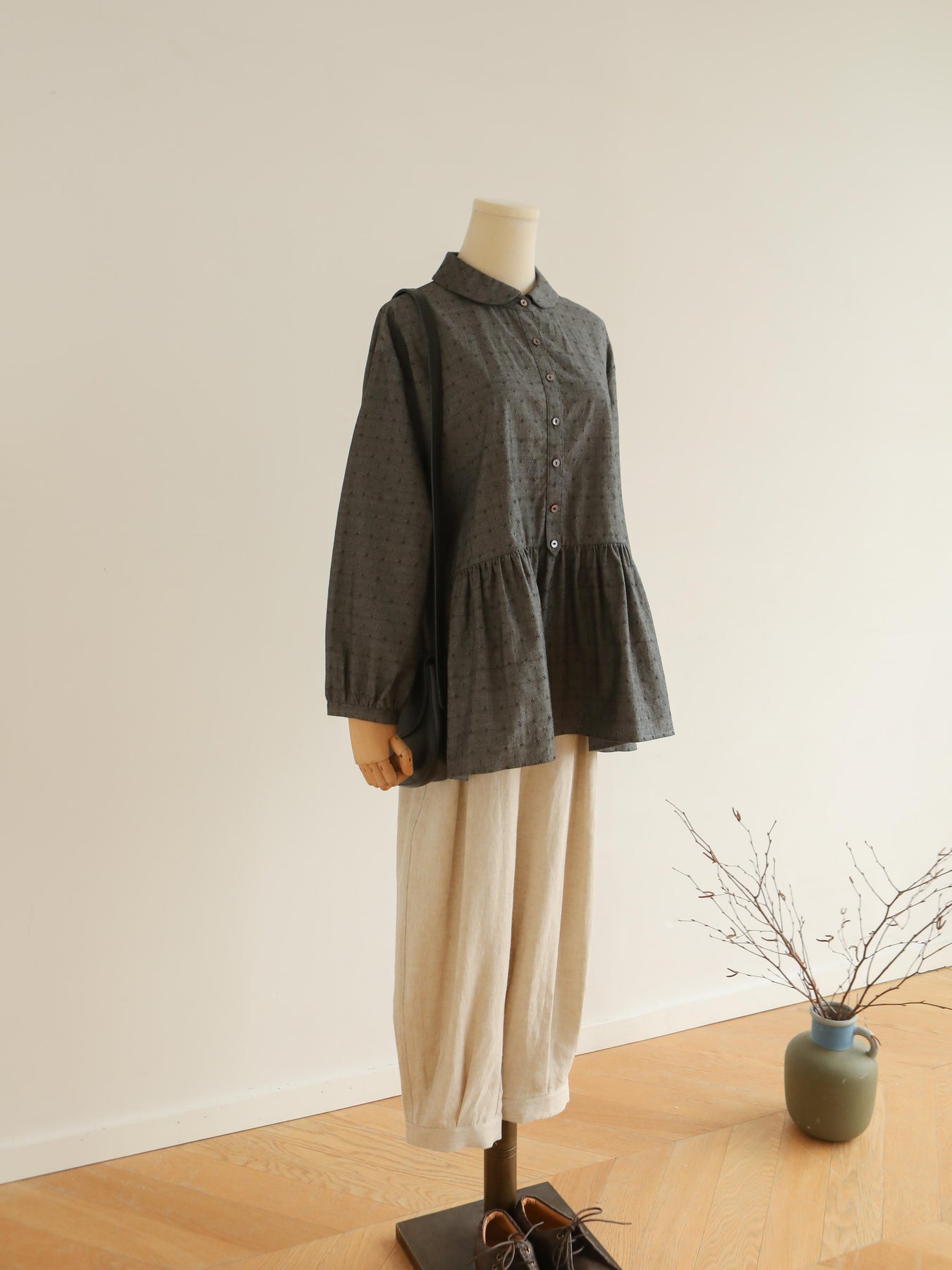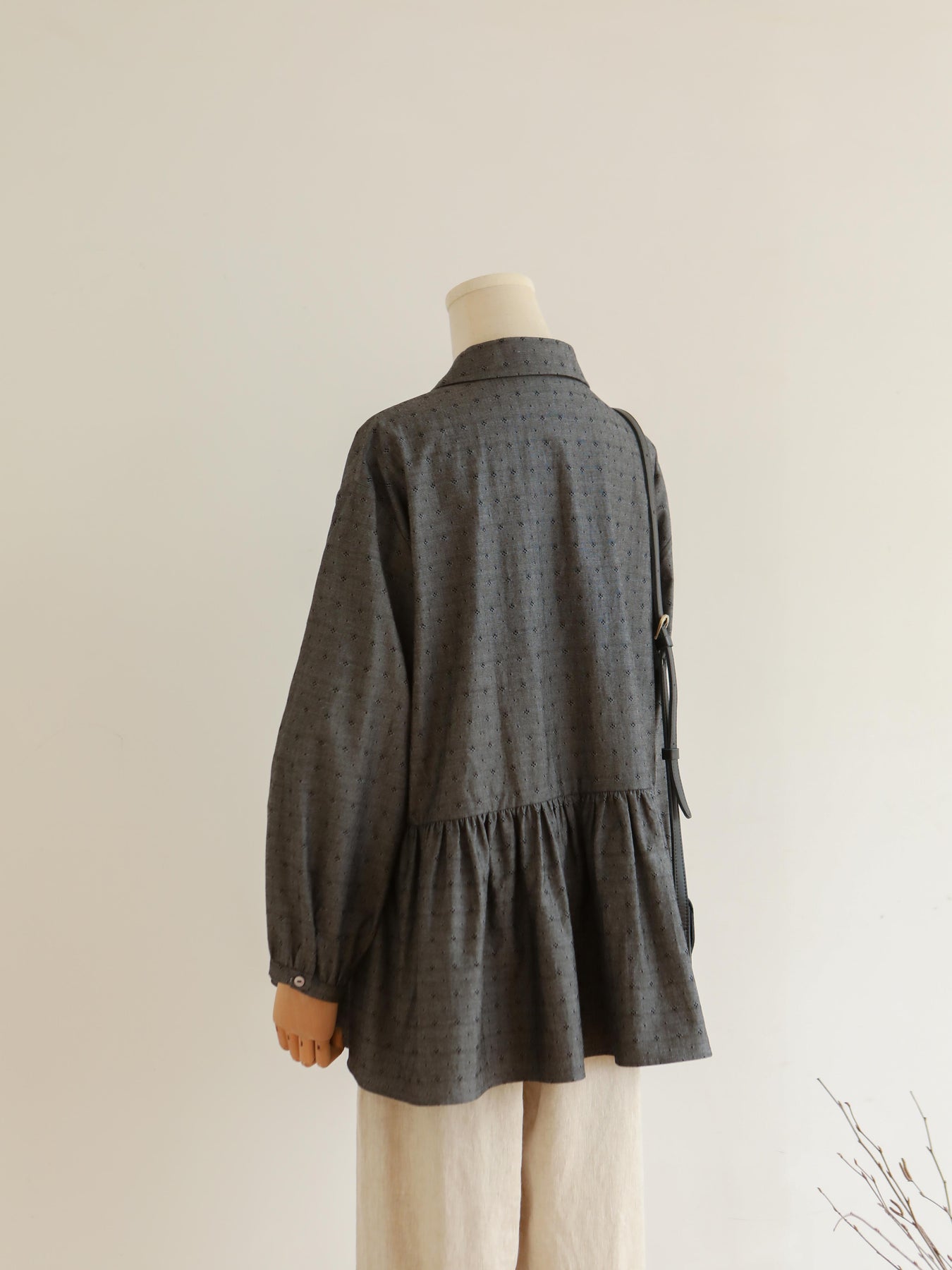 立体シルエットが美しい、ドット織りシャツブラウス  長袖ブラウス 250919-1