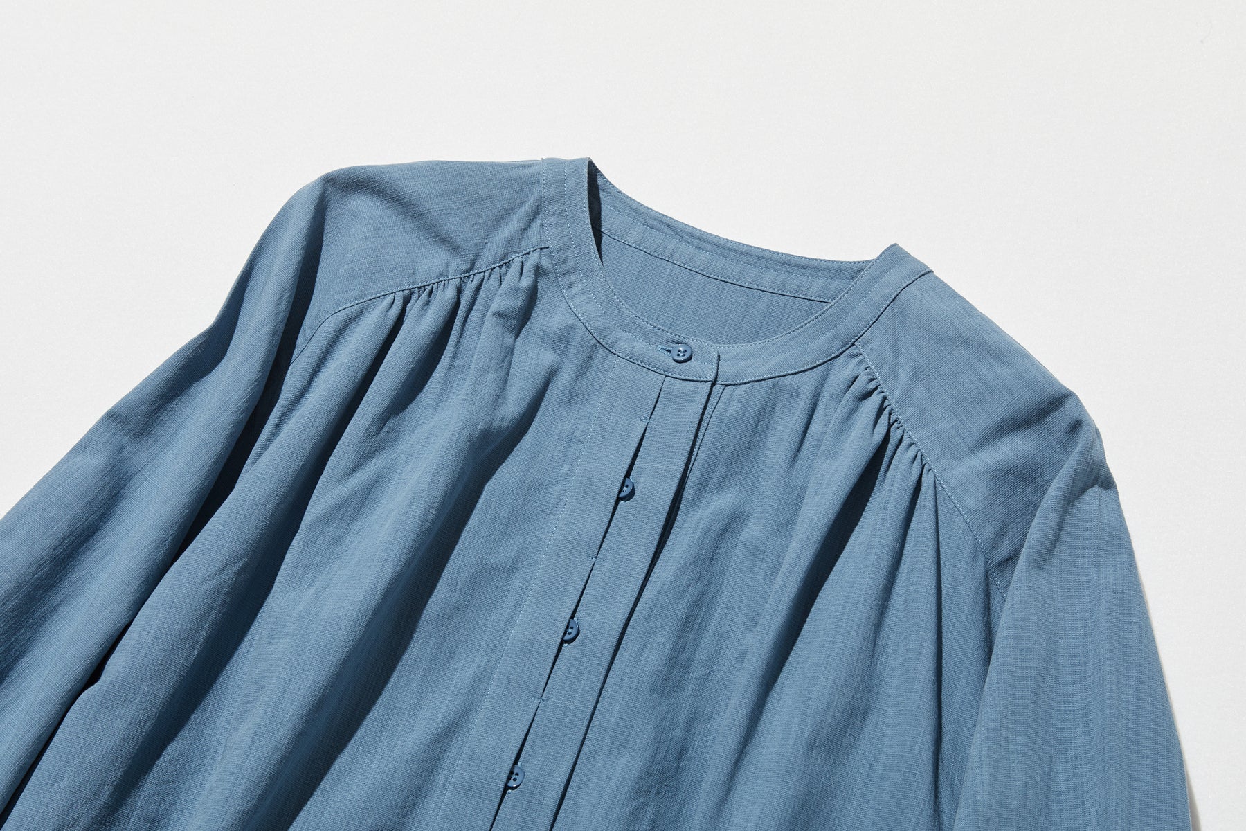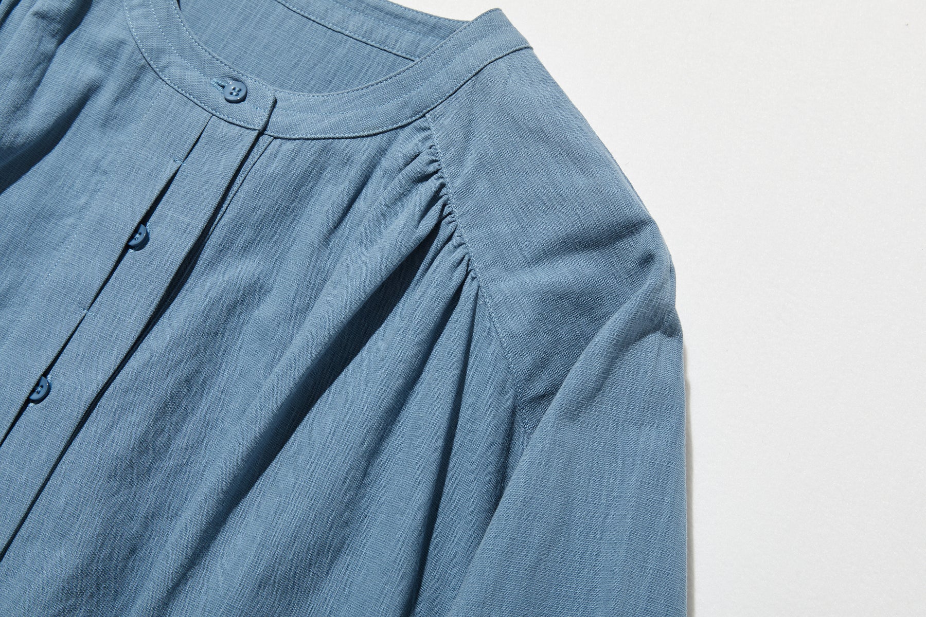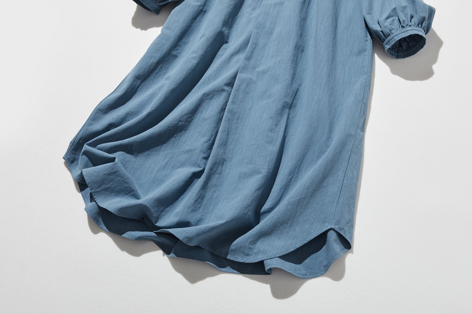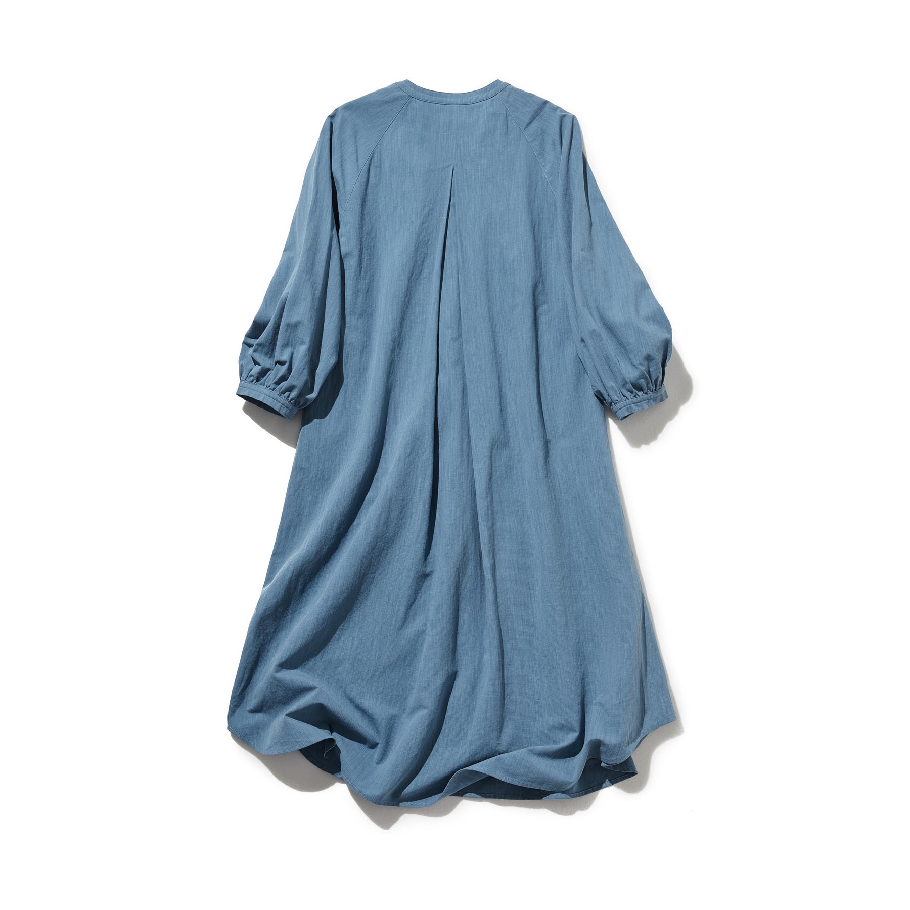 ふんわりした女性らしいシルエットが魅力。秋冬の抜け感ロングワンピース コットンリネン ワンピース 250912-1【ゆったりシルエットが魅力的なロングワンピース】●裾に向かって優雅に広がるシルエットと、丸みを帯びたラウンド裾が、柔らかで女性らしい曲線を描くワンピースです。体のラインをきつく縛らないゆとりある設計で、心地よい着心地とともに、上品な雰●囲気を演出します。【秋冬の定番に。さりげない注目ディテール】●素材には、通年を通して快適な着心地が魅力のリネンコットンを採用。秋冬は、肌に触れる部分がひんやりしないよう、インナーやタイツと組み合わせてお楽しみいただけます。●シンプルながらも、胸元で生地を重ねた「前立て」のディテールがアクセントとなり、一枚でも存在感を放ちます。●肩部分の「ヨーク」と呼ばれる部分に施したギャザーが、程よい立体感とゆとりを生み出し、肩周りをすっきりと見せます。【さわやかで上品な「優しいブルー」】秋冬の装いに、さわやかなアクセントを加えてくれる落ち着いたブルーカラー。暗くなりがちな季節のコーディネートを、明るく上品に引き立てます。【スタイリングのご提案】• カジュアルに… スニーカーやローファーと合わせて、ゆるっとした可愛らしさを。• きれいめに… レギュラー丈のデニムパンツやスラックスを中に着込んで、裾からちらりと見える重ねづかいを。ベロアやニットの素材との相性も抜群です。• 保温対策に… 秋冬は、タートルネックやハイネックのインナーを合わせ、タイツやブーツでしっかり防寒。コートのインナーとしても活躍します。程よいゆとりと、女性らしいシルエットが魅力の一枚。季節を問わず長く愛用していただける、おすすめのワンピースです。素材:コットン68%リネン16%テンセル16%サイズ:身丈 レギュラー110cm ロング120cm桁丈78cmバスト120cm首回り44cmアームホール54cm裾174cm透け感:なし裏地:なしポケット:あり伸縮性:なし光沢感:なしシーズン:春、秋、