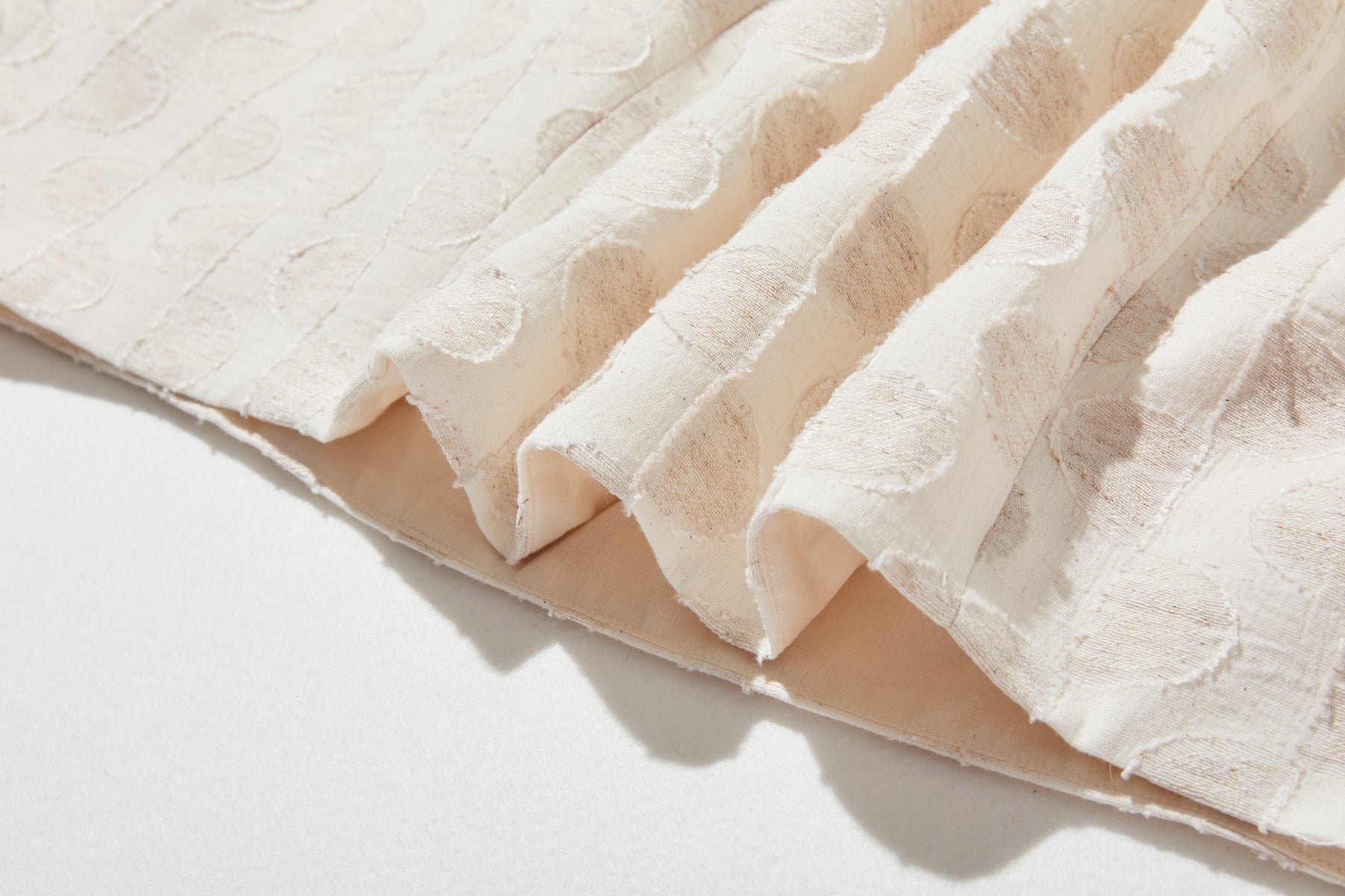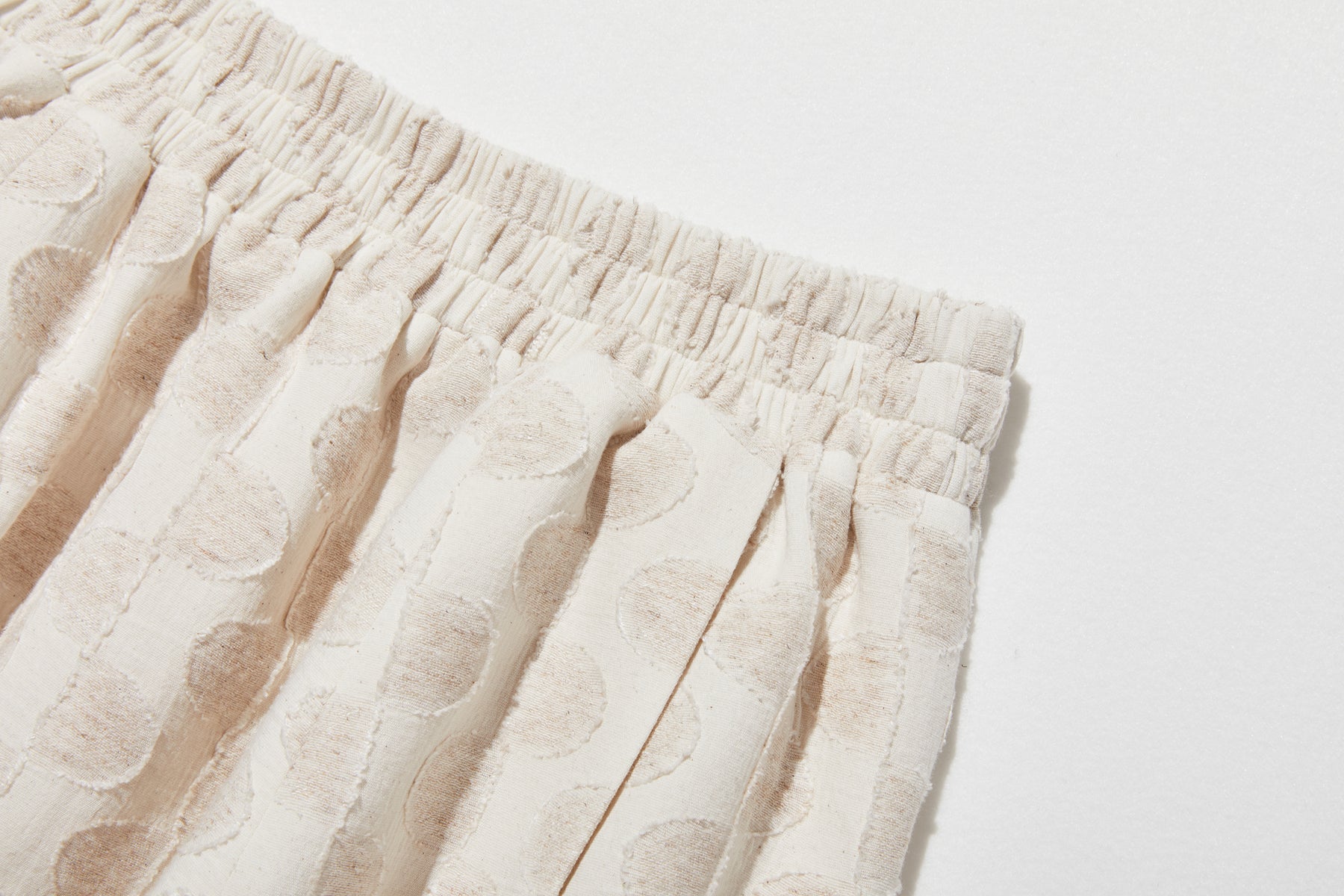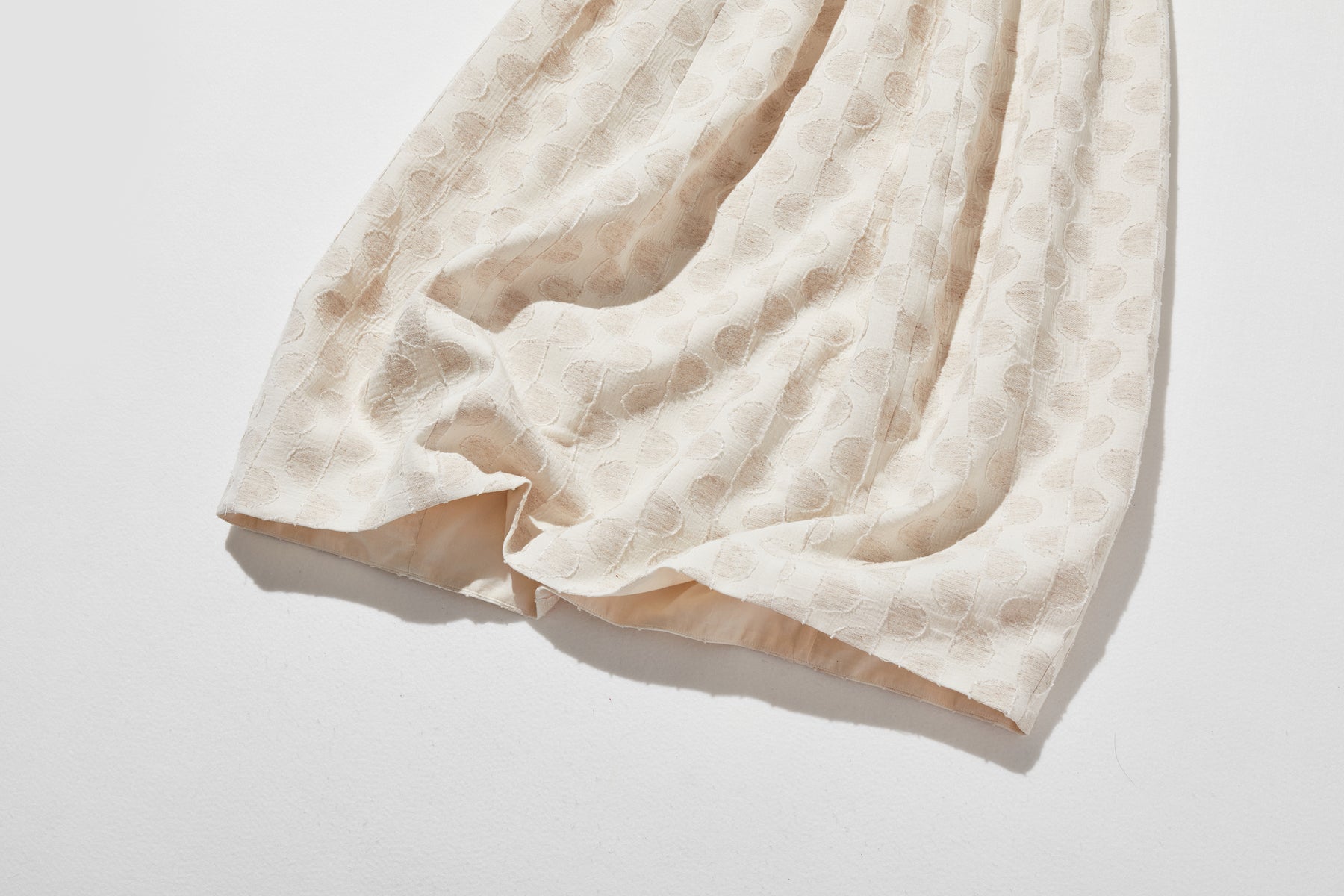 【ヴィンテージモダンなシルエット】コットンリネン素材 バルーンスカート ロングスカート 裏地付き 250910-1★ヴィンテージな風合いが漂う、コットンリネン素材で仕立てたバルーンスカートです。★腰まわりからたっぷりと寄せたギャザーと、裾に入れたダーツが絶妙に絡み合い、他にはない独特の立体感のあるシルエットを生み出しています。★さらりと軽やかな肌触りながらも、コットンリネンならではの張りとボリューム感が、丸みを帯びた美しいラインを描きます。★ウエストは総ゴム仕様で、着け心地は快適そのもの。食事の後でもきつくならず、一日中快適に過ごせます。★同素材のベストと上下を揃えてコーディネートすれば、素材の統一感から、より一層上質でまとまりのある印象に。もちろん、単品でも大活躍間違いなしのアイテムです。【このスカートの特徴】独特なシルエット: バルーンスカートの可愛らしさと、ダーツによる立体感が融合した、個性的でモダンなデフォルメシルエット。着心地の良さ: ウエスト全体がゴム仕様なので、サイズの選択に悩むことなく、また着圧を感じずにフィットします。素材の魅力: 通気性に優れ、一年中を通して快適にご着用いただけます。ヴィンテージ感のある風合いが、味わい深い雰囲気を醸し出します。コーディネートの広がり: シンプルなトップスと組み合わせるだけで、ぐっとおしゃれな印象に。【スタイリングのご提案】【合わせやすい定番スタイル】 白いTシャツやシンプルなニット、ブラウスと組み合わせるだけで、スカートが主役のスタイルが完成します。【上下セットで上品に】 同じ素材のベストと合わせれば、統一感のある上品なツーセットコーデに。 ベストを着ることでウエスト周りがすっきりとし、よりスタイルアップした印象に見せられます。【レイヤードスタイル】 秋冬にはタイトなニットやロンTの上からベストを羽織り、スカートと組み合わせて重ね着を楽しむこともできます。【シューズ合わせ】 スニーカーでカジュアルに、ローファーやバレエシューズでガーリーに、パンプスで少し大人っぽく。様々なシューズで印象を変えられます。1枚あると、コーディネートの可能性がぐっと広がる魔法のスカートです。ぜひ、お手持ちのアイテムと組み合わせて、ご自身だけのスタイルをお楽しみください。素材:表地:リネン30% コットン70%裏地:コットン100%サイズ:総丈76cmウェスト68〜80cm裾138cm透け感:なし裏地:ありポケット:あり伸縮性:なし光沢感:なしシーズン:秋、冬、春