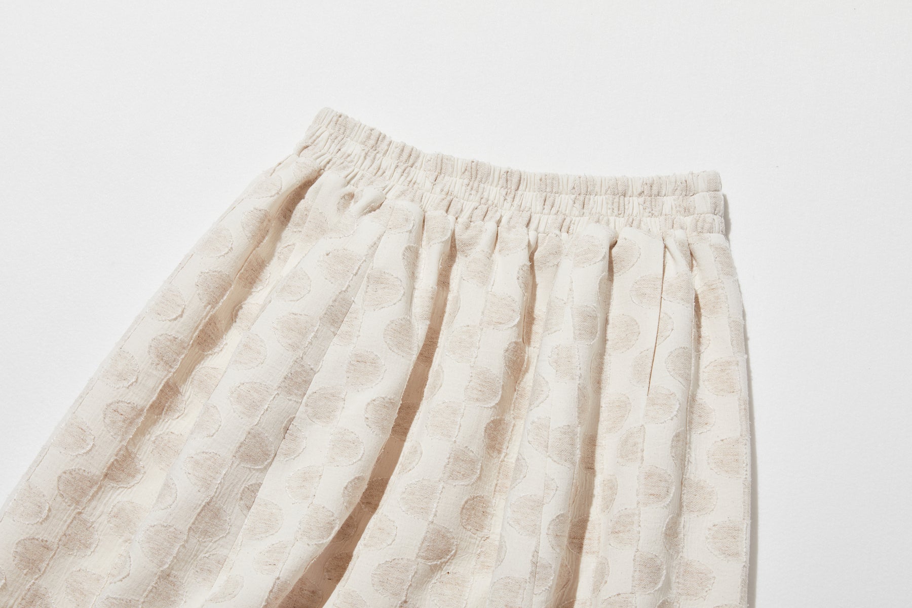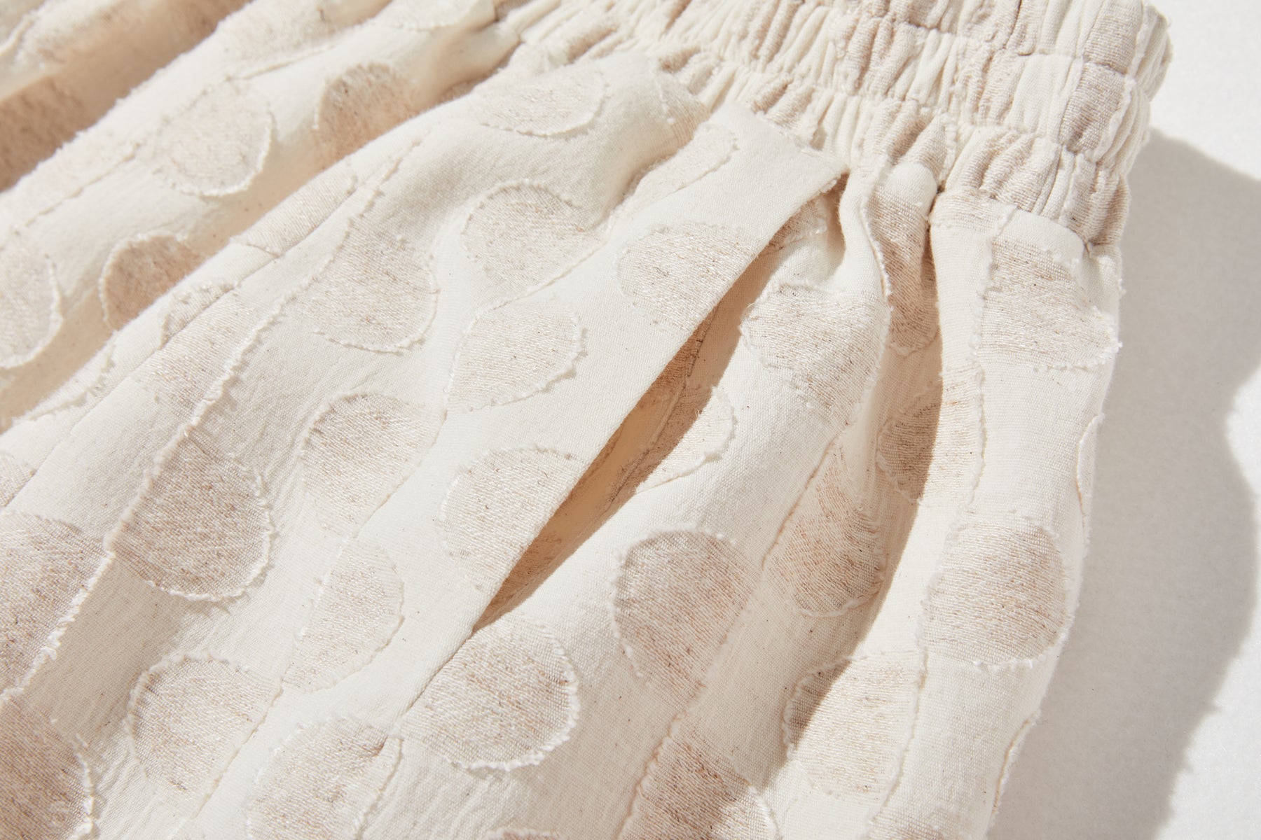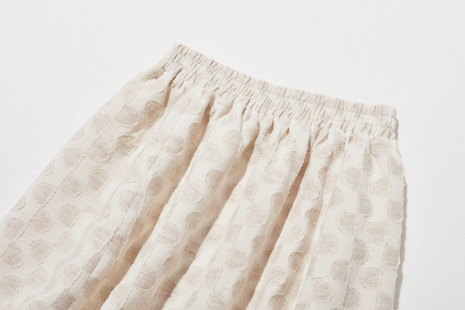 【ヴィンテージモダンなシルエット】コットンリネン素材 バルーンスカート ロングスカート 裏地付き 250910-1★ヴィンテージな風合いが漂う、コットンリネン素材で仕立てたバルーンスカートです。★腰まわりからたっぷりと寄せたギャザーと、裾に入れたダーツが絶妙に絡み合い、他にはない独特の立体感のあるシルエットを生み出しています。★さらりと軽やかな肌触りながらも、コットンリネンならではの張りとボリューム感が、丸みを帯びた美しいラインを描きます。★ウエストは総ゴム仕様で、着け心地は快適そのもの。食事の後でもきつくならず、一日中快適に過ごせます。★同素材のベストと上下を揃えてコーディネートすれば、素材の統一感から、より一層上質でまとまりのある印象に。もちろん、単品でも大活躍間違いなしのアイテムです。【このスカートの特徴】独特なシルエット: バルーンスカートの可愛らしさと、ダーツによる立体感が融合した、個性的でモダンなデフォルメシルエット。着心地の良さ: ウエスト全体がゴム仕様なので、サイズの選択に悩むことなく、また着圧を感じずにフィットします。素材の魅力: 通気性に優れ、一年中を通して快適にご着用いただけます。ヴィンテージ感のある風合いが、味わい深い雰囲気を醸し出します。コーディネートの広がり: シンプルなトップスと組み合わせるだけで、ぐっとおしゃれな印象に。【スタイリングのご提案】【合わせやすい定番スタイル】 白いTシャツやシンプルなニット、ブラウスと組み合わせるだけで、スカートが主役のスタイルが完成します。【上下セットで上品に】 同じ素材のベストと合わせれば、統一感のある上品なツーセットコーデに。 ベストを着ることでウエスト周りがすっきりとし、よりスタイルアップした印象に見せられます。【レイヤードスタイル】 秋冬にはタイトなニットやロンTの上からベストを羽織り、スカートと組み合わせて重ね着を楽しむこともできます。【シューズ合わせ】 スニーカーでカジュアルに、ローファーやバレエシューズでガーリーに、パンプスで少し大人っぽく。様々なシューズで印象を変えられます。1枚あると、コーディネートの可能性がぐっと広がる魔法のスカートです。ぜひ、お手持ちのアイテムと組み合わせて、ご自身だけのスタイルをお楽しみください。素材:表地:リネン30% コットン70%裏地:コットン100%サイズ:総丈76cmウェスト68〜80cm裾138cm透け感:なし裏地:ありポケット:あり伸縮性:なし光沢感:なしシーズン:秋、冬、春
