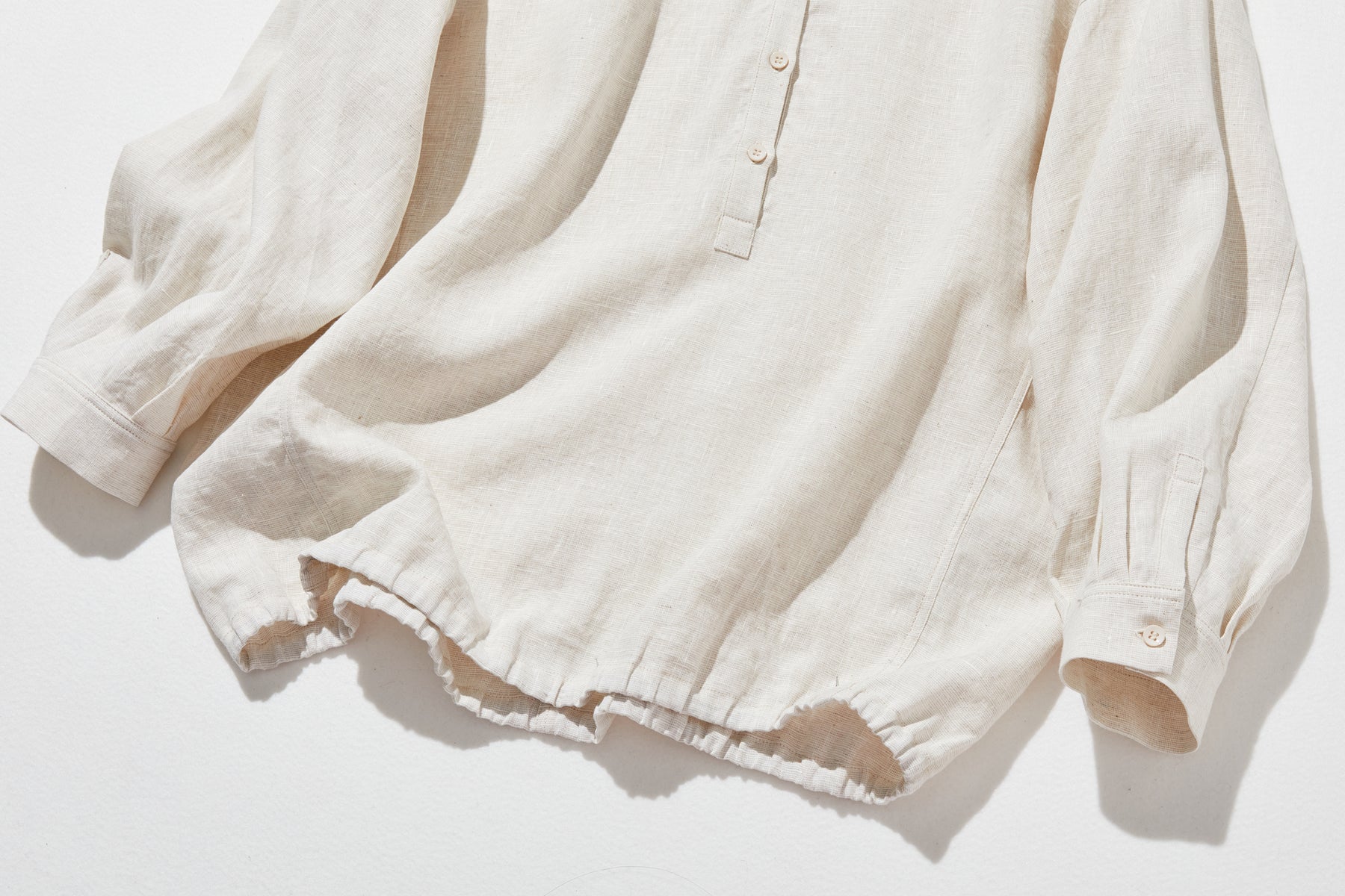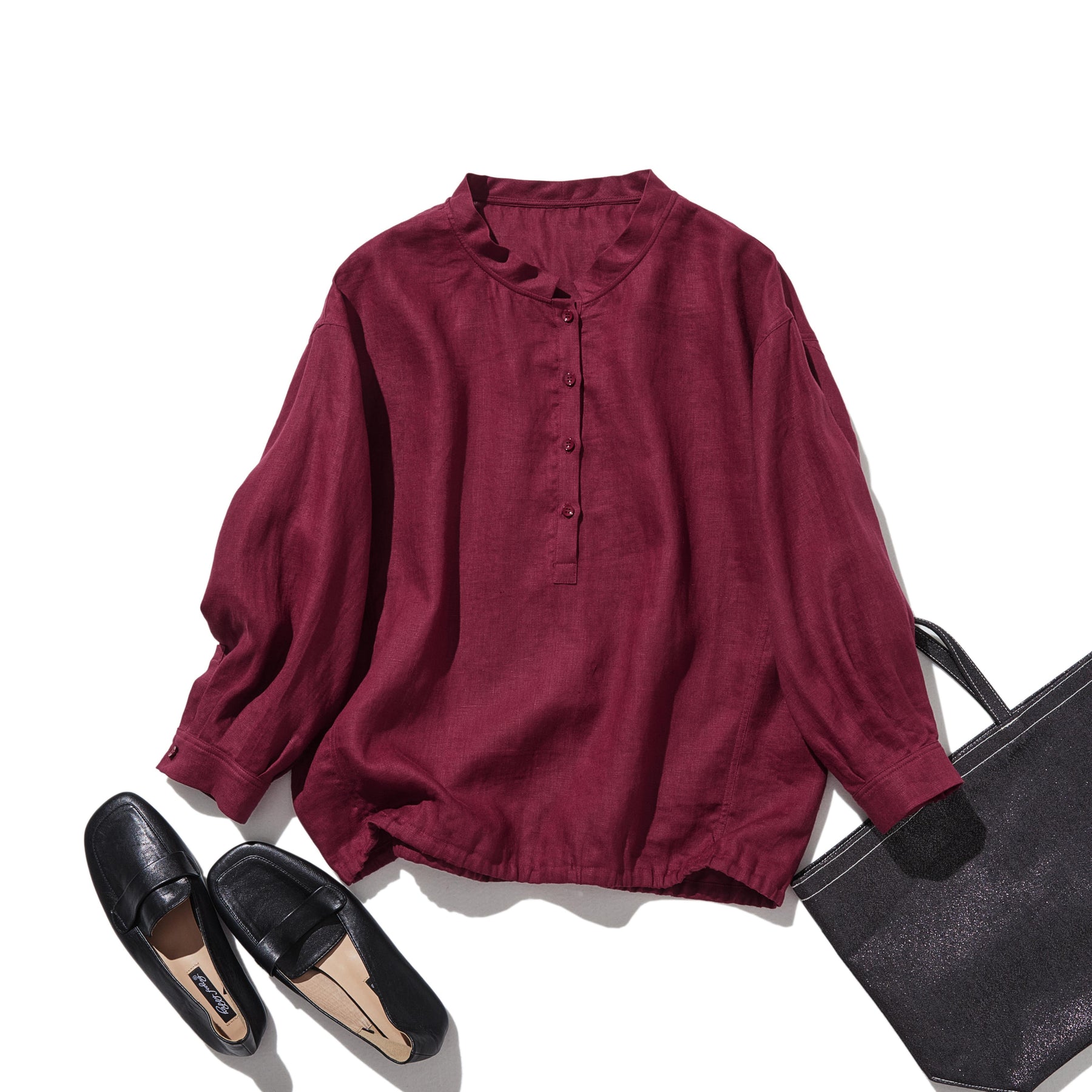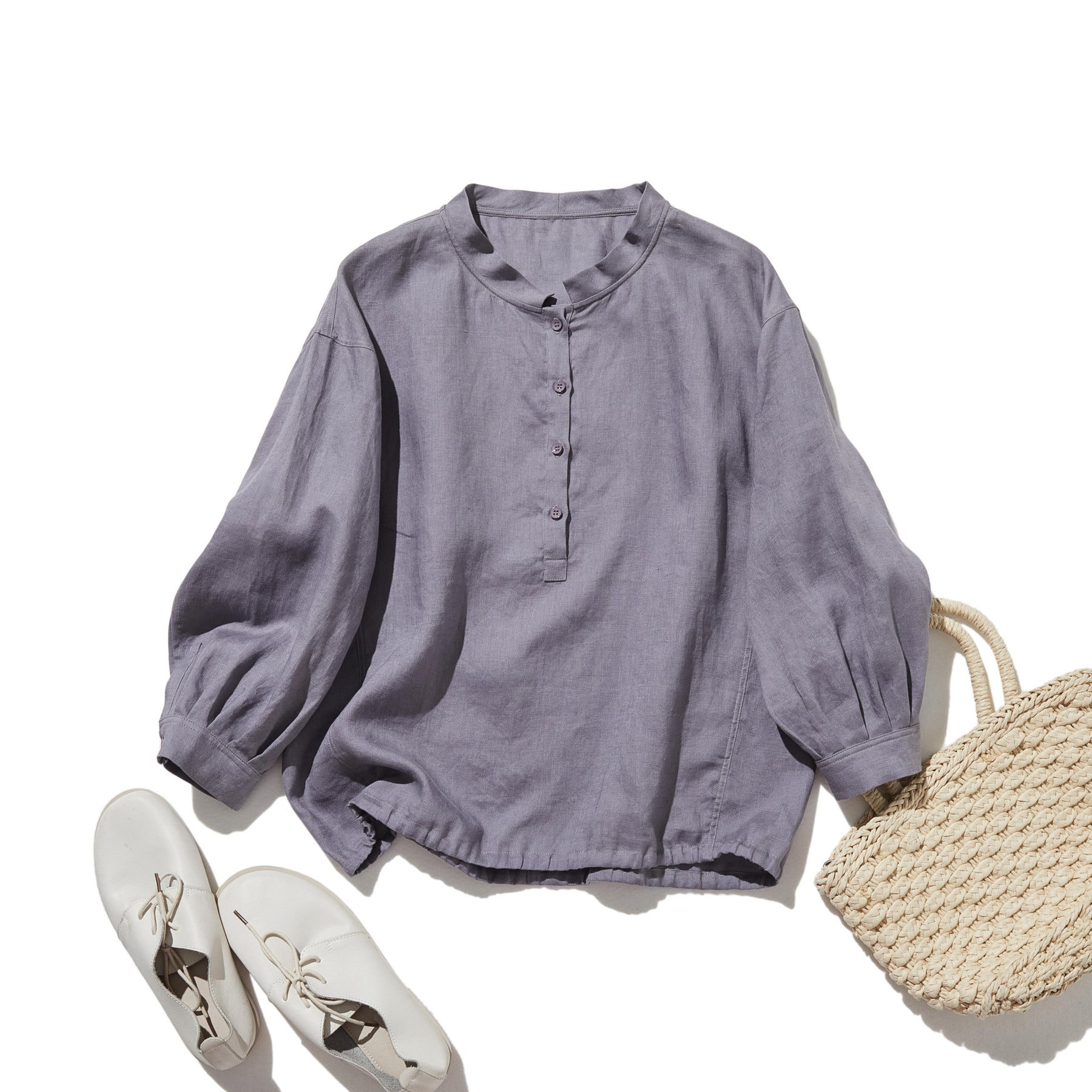 シーンを選ばず、さまざまなコーディネートの主役になるリネンブラウス 長袖ブラウス 250921