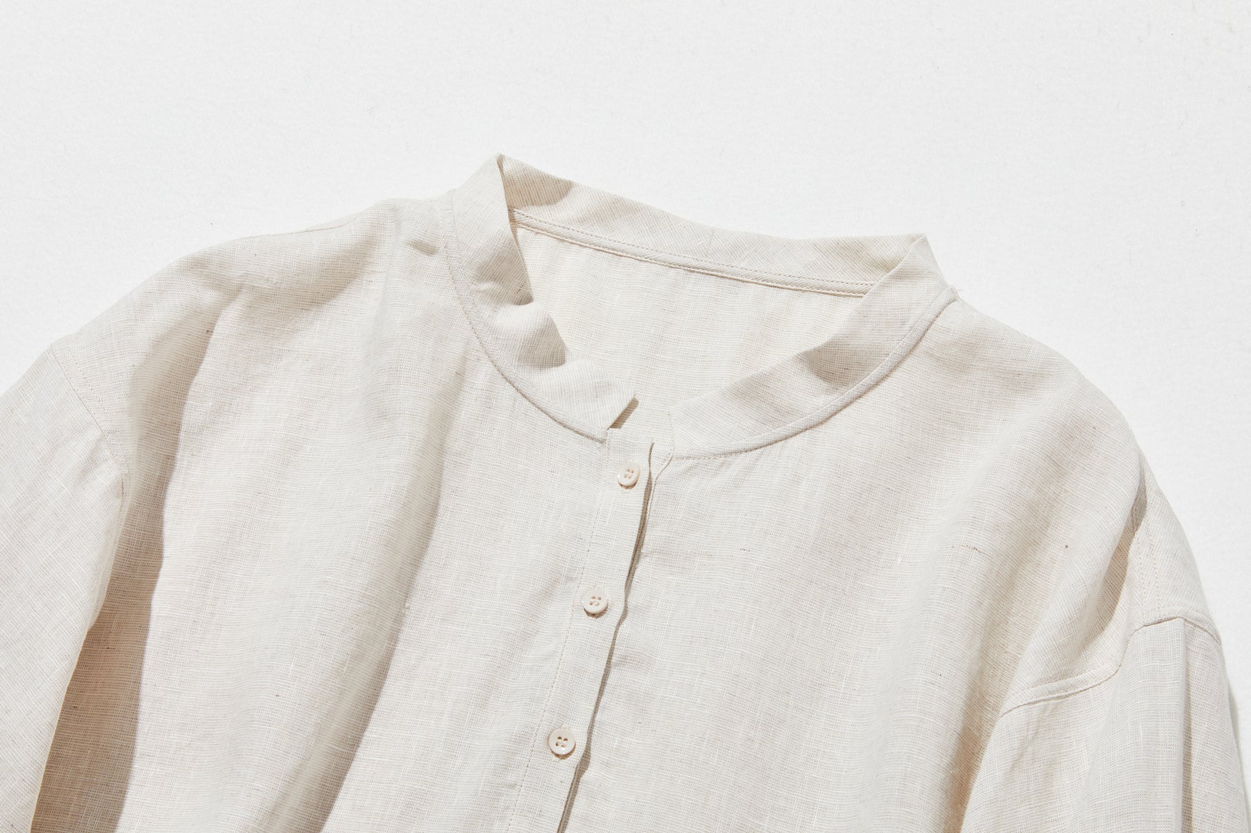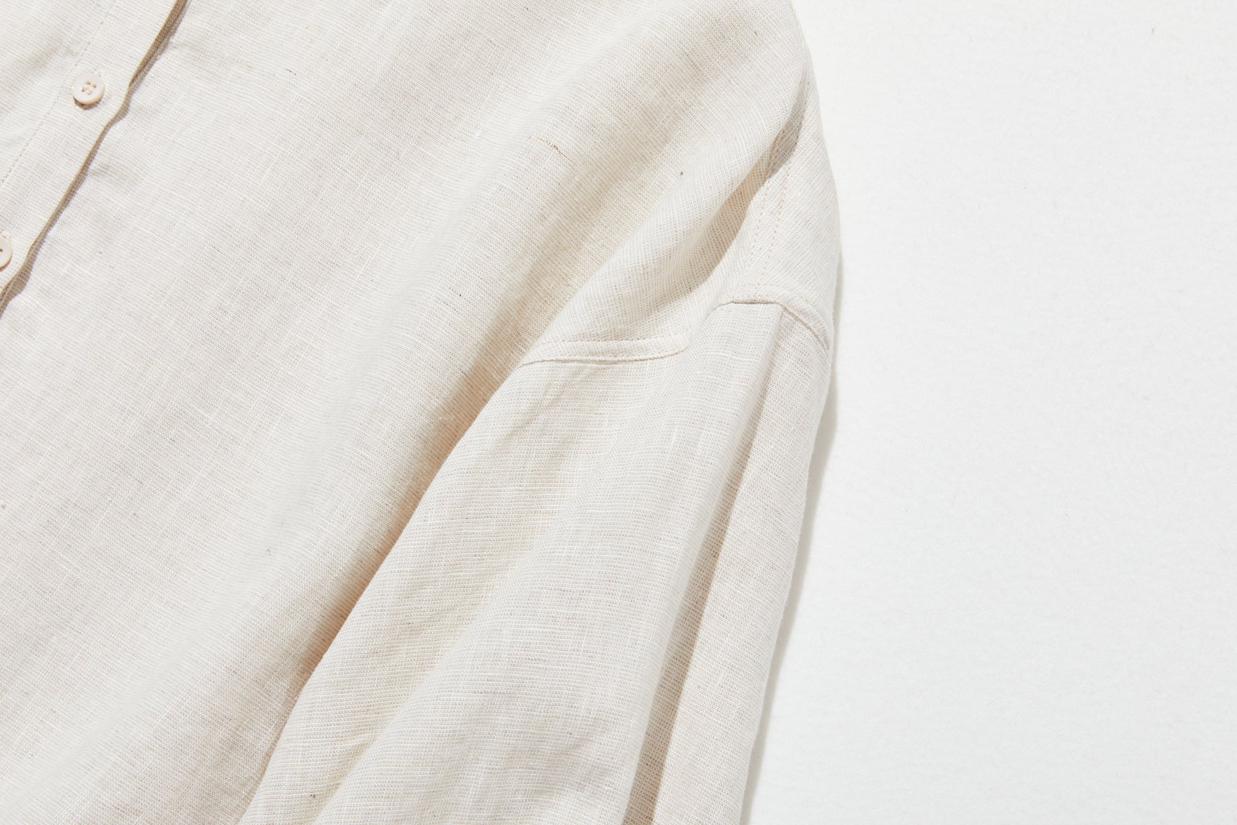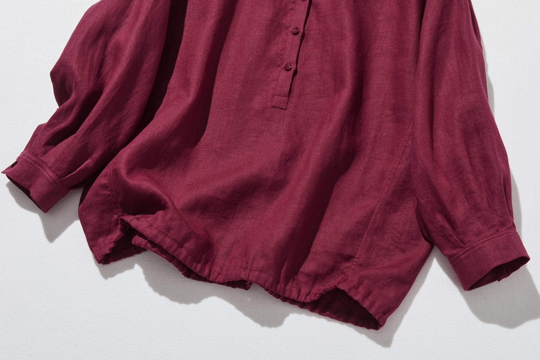 シーンを選ばず、さまざまなコーディネートの主役になるリネンブラウス 長袖ブラウス 250921