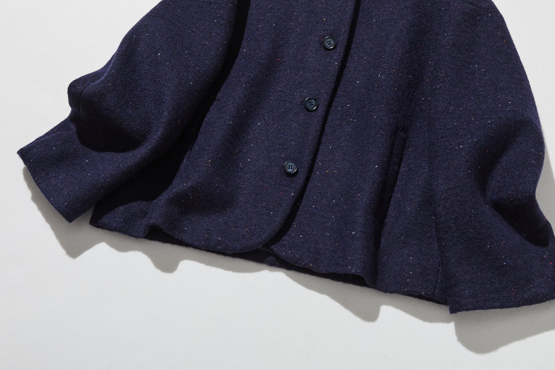 【素材】★表情豊かなウール混紡生地を使用★杢調のミックスカラーが着こなしをニュアンスアップ★脱いだり着たりがスムーズに行える、なめらかな裏地つき