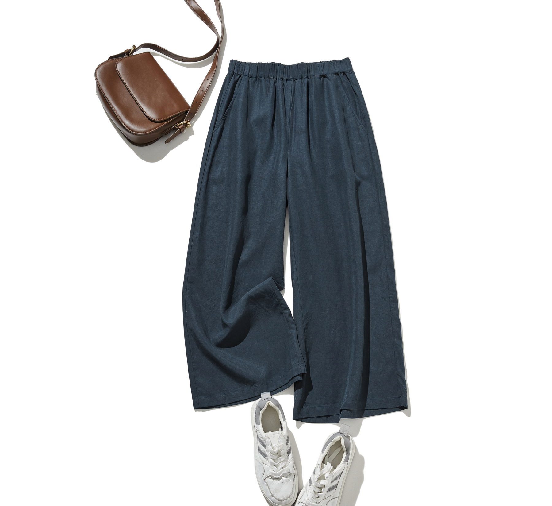 Wide pants are often made with a lot of fabric, so you might be worried they'll make you look fat. Our original all-elastic wide pants are made with careful design, such as the amount of elastic, and carefully selected materials, so they're comfortable and make you look slimmer.