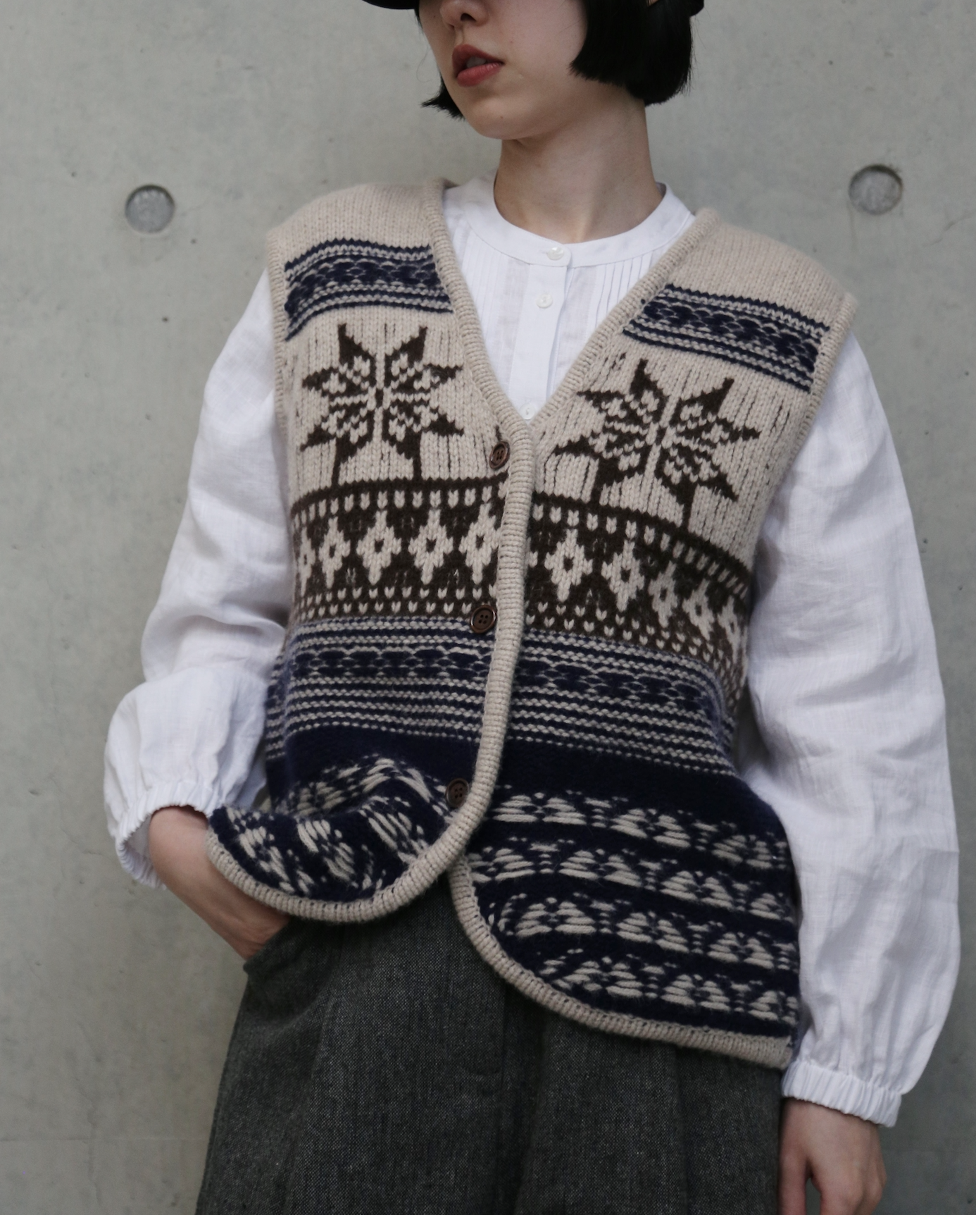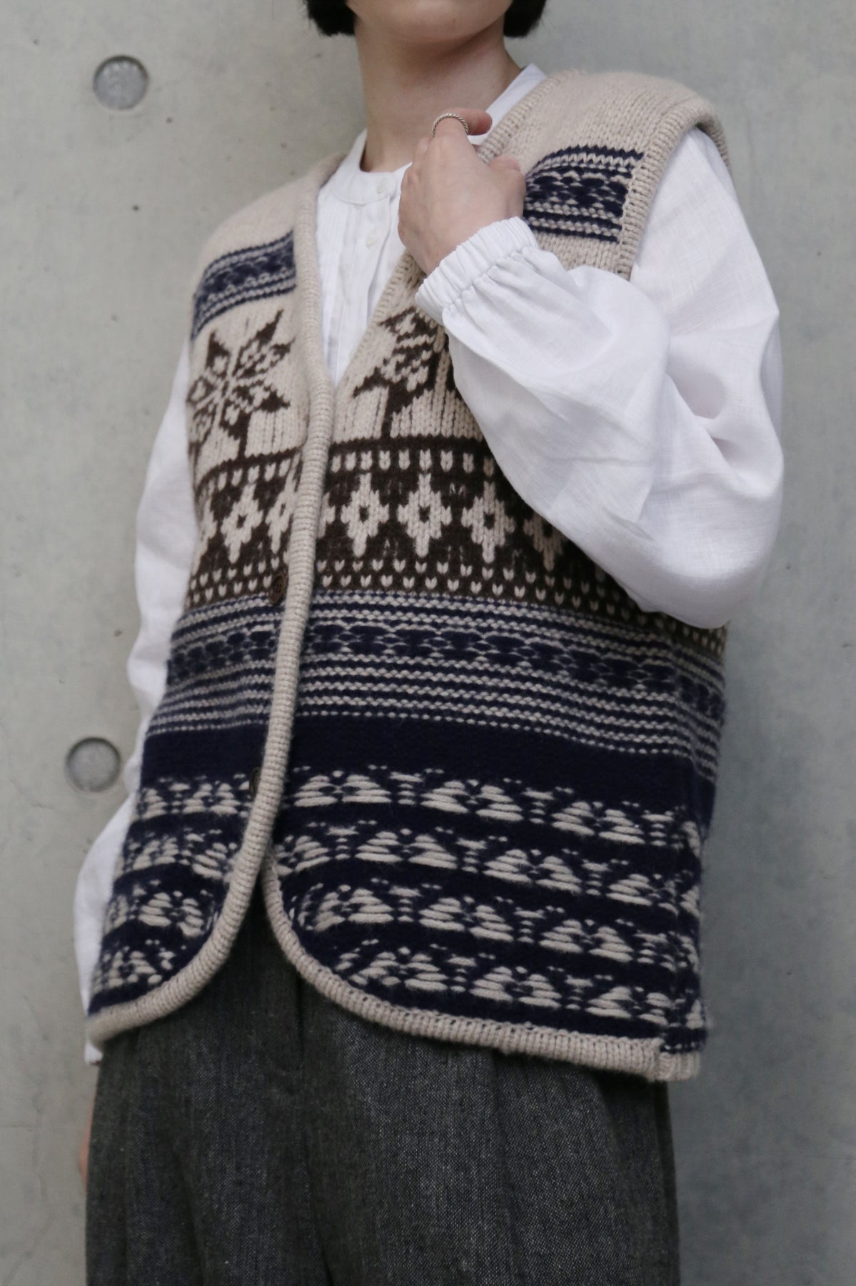 温もりを纏う、フェアアイルニットベスト ウール100% ウールベスト   251208-1